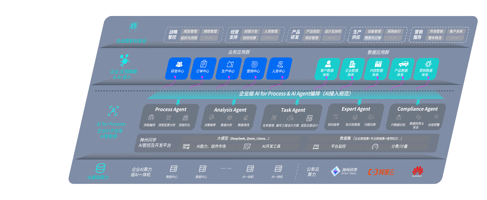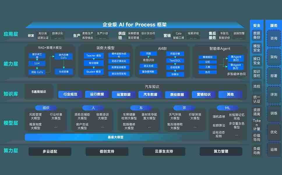 端到端的一站式AI工作空间深度融合了从企业战略规划到日常经营的全流程业务板块,,定向解决车企内部领域多、、、、部门多、、、链条长、、、、场景碎片化等难题,,,,支持车企快速构建以AI为核心的生产力写作体系,,实现任务执行与AI能力的无缝集成与交互